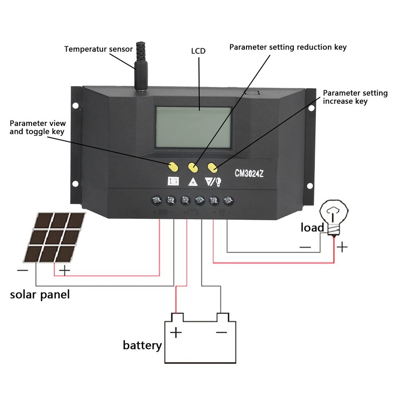 EVTSCAN CM3024Z 30A Solar Charge Controller - LCD PWM Charge Controller Photovoltaic Controller