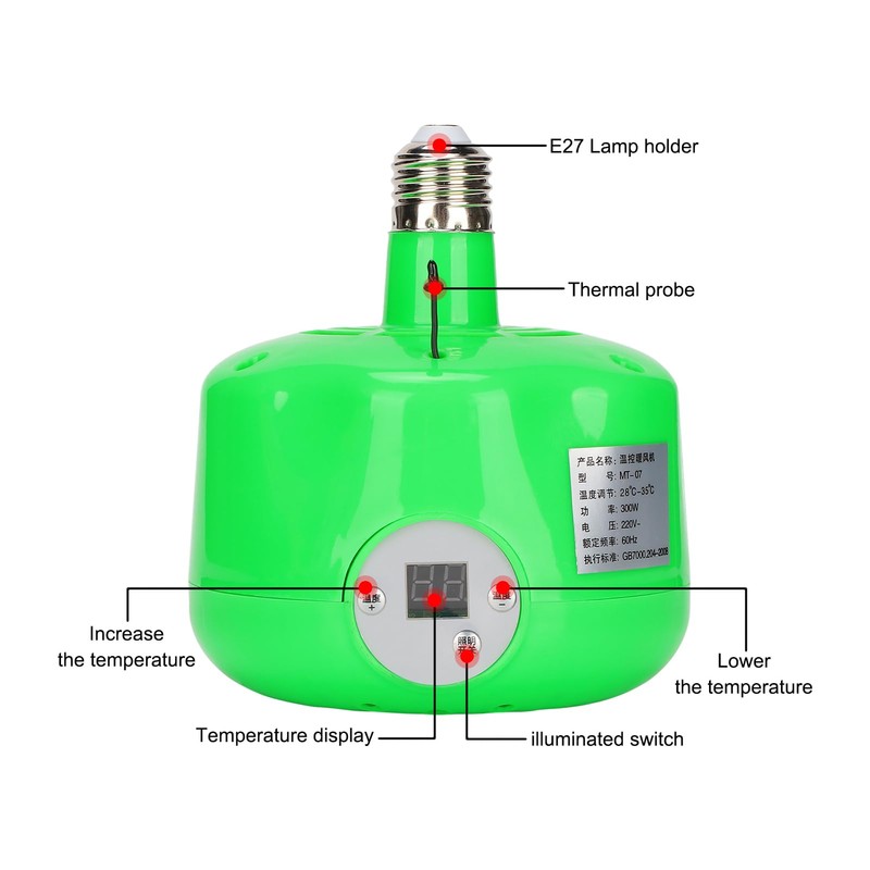 - Power failure memory function: automatically restores previous settings after a power outage, ensuring uninterrupted maintenance of poultry, livestock, reptiles and small animals such as hamsters and hedgehogs.