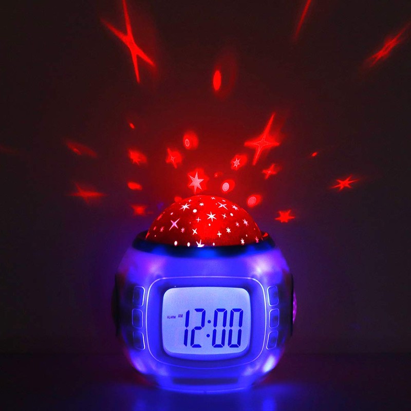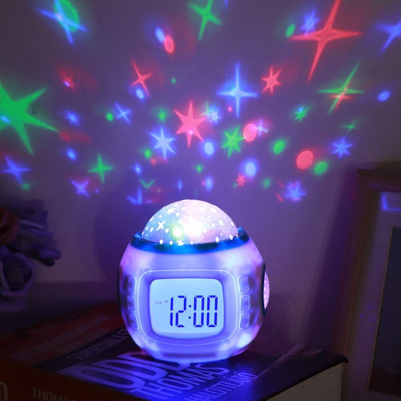 EVTSCAN Star Sky Projector LED Music Alarm Clock Multifunction Calendar Temperature Dispaly Night Light Children Gift
