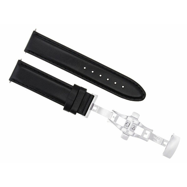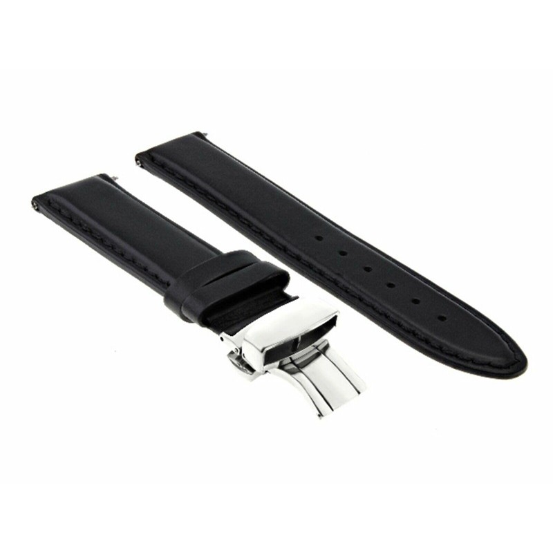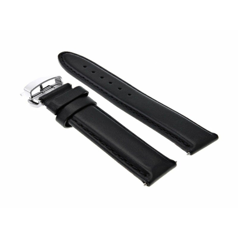 - Compatibility & Size: 18MM Leather Strap Smooth Band Deployment Clasp, compatible with Omega Speedmaster, Black, #2.