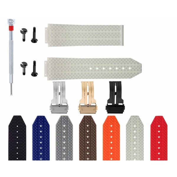 Ewatchparts 24-25mm Rubber Watch Band Strap Compatible With Hublot Big Bang Ceramic Clasp Includes 4 Black Screws And Screw Driver