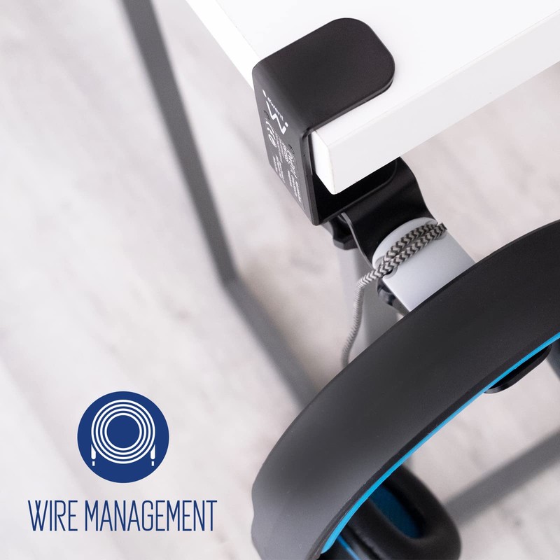 - SAVE SPACE: Slim and lightweight design won't look bulky visually. It will not occupy your desktop space, make your desktop more concise and clean, and bring convenience to your life. Keep your desk tidy. Very practical. In addition, the hook has a curved design to prevent the headphones from falling out accidentally. The headphone stand has two small holes to organize your wired headphones and USB cables and keep the headphone cable in place and prevent the cables from catching on the floor or slipping.