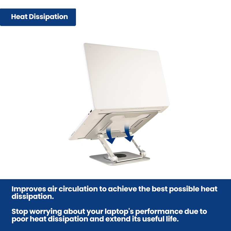 - Portable and stable: made of high-quality aluminium alloy. The base of the stand together with the rotating stand design ensures great stability and keeps the stand stable with the laptop at the desired height and angle, which ensures less wobble and more stability.