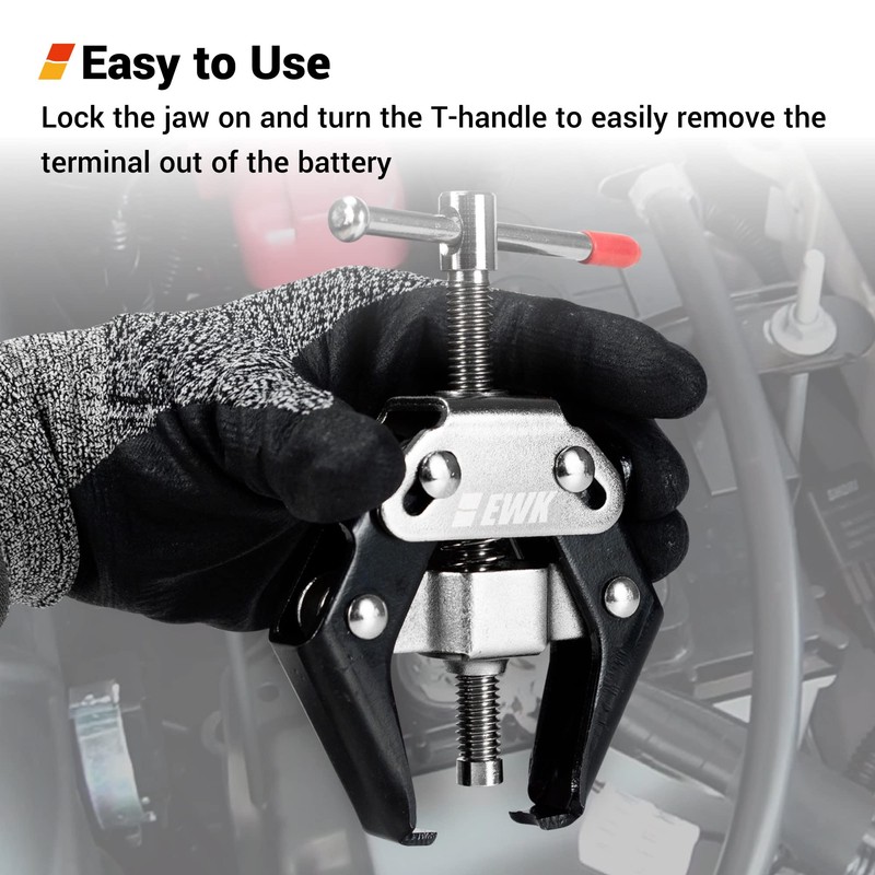 - 【 Easy to Use 】 The self-locking jaw control with spring loaded makes jaws easy to open and seize on the bearing. Then turn the T-handle from the top to remove wipers (or terminal) without fear of using too much brute force and damage.