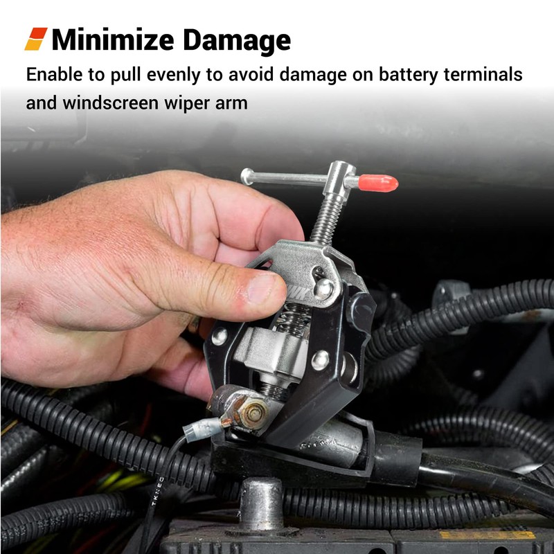 - 【 Damage Free 】 Features a spindle and locking jaws ensure secure grip of the wiper arm therefore enables you pull evenly to avoid damage on battery terminals or seized windscreen wiper arm.