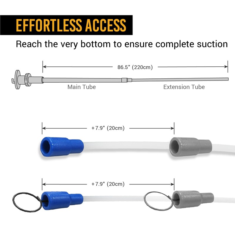 - 【Hassle-Free】Change oil without crawling under your car. No mess, no cleanup. Simply remove the dipstick and insert the tube for a seamless oil change experience.