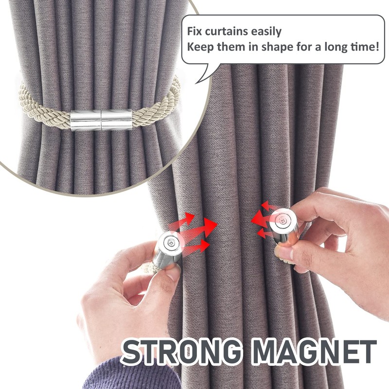- Upgraded Magnet Design - Magnetic curtain tie backs use an upgraded version of nickel-plated magnets, which are strong, smooth, and rust-resistant, and will not fall after buckling the curtain. The brightly colored decorative braided rope is hand-woven with premium polyester cotton materials. High strength, strong toughness, is not easy to fall off, wear or pilling