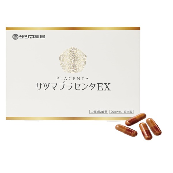 サツマ薬局 サツマプラセンタEX 天然成分 (ピュアコラーゲン/ビール酵母) 国産豚プラセンタ エキス純末 (1カプセル 170mg配合) 美容サプリ (90カプセル×1個)