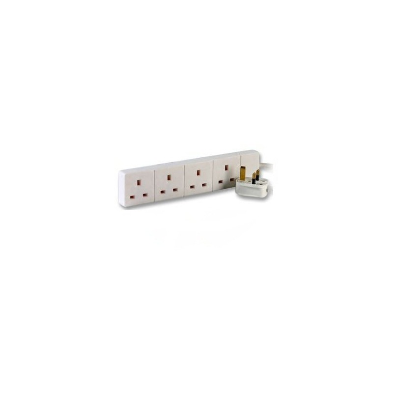 - Ex-Pro 4 Way Gang Extension With Lead Fitted With UK 13A Plug, White