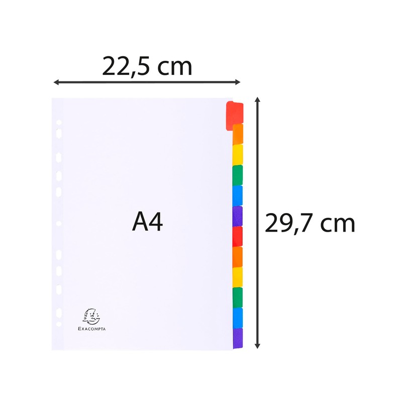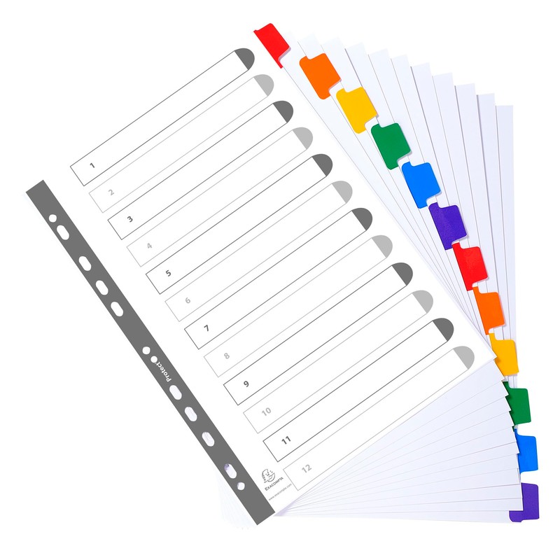 Exacompta 2312E White Cardboard Index for DIN A4, Made of Strong Cardboard, 12 Pieces, Full Height 22 x 29.7 cm, White Sheets 2 x 6 Coloured and Reinforced Tabs for Storing Document Sleeves, Dividers.