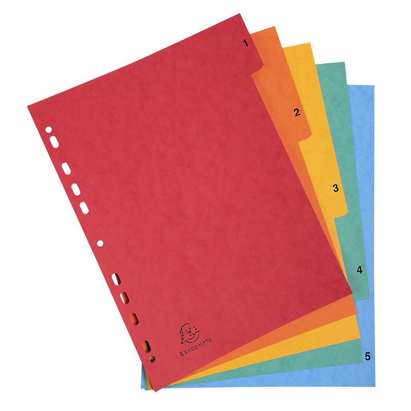 Exacompta 3110Z Premium Index 1-5 for DIN A4 Made of Strong Coloured Chipboard 5 Pieces Full Height 22.5 x 29.7 cm Full Colour 5 Colours with Index Page for DIY Dividers Dividers Strips