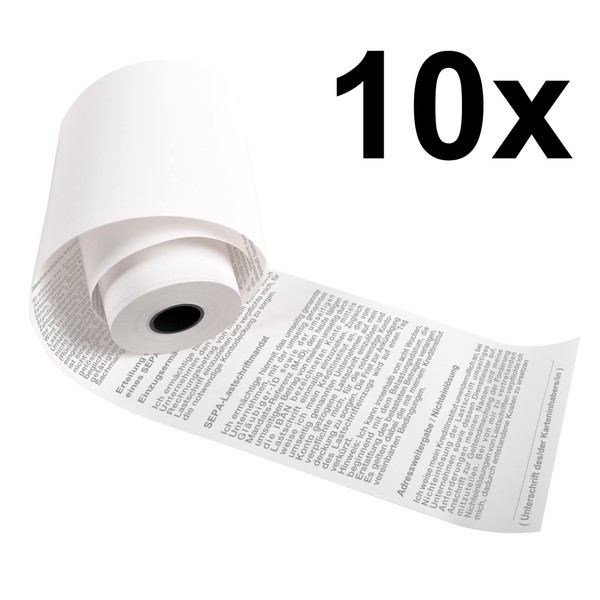 Exacompta 40339DE Pack of 10 Thermal Rolls for EC Cash Devices, 1-Ply, Width: 57 mm, Length: 18 m, Core Diameter: 12 mm, SEPA Direct Debit Text on the Back (German) 55 g/m² Extra BPA Free