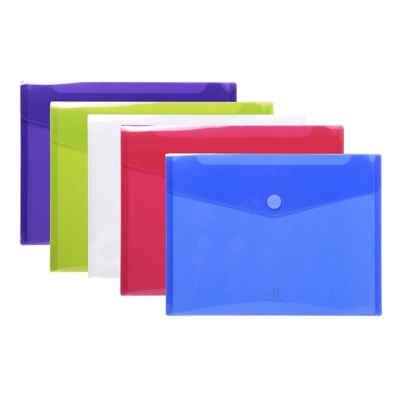 Exacompta 56420E Pack of 5 Plastic Envelopes DIN A5 for Envelopes with Velcro Fastening and Flap Made of Soft Plastic Translucent Assorted Colours