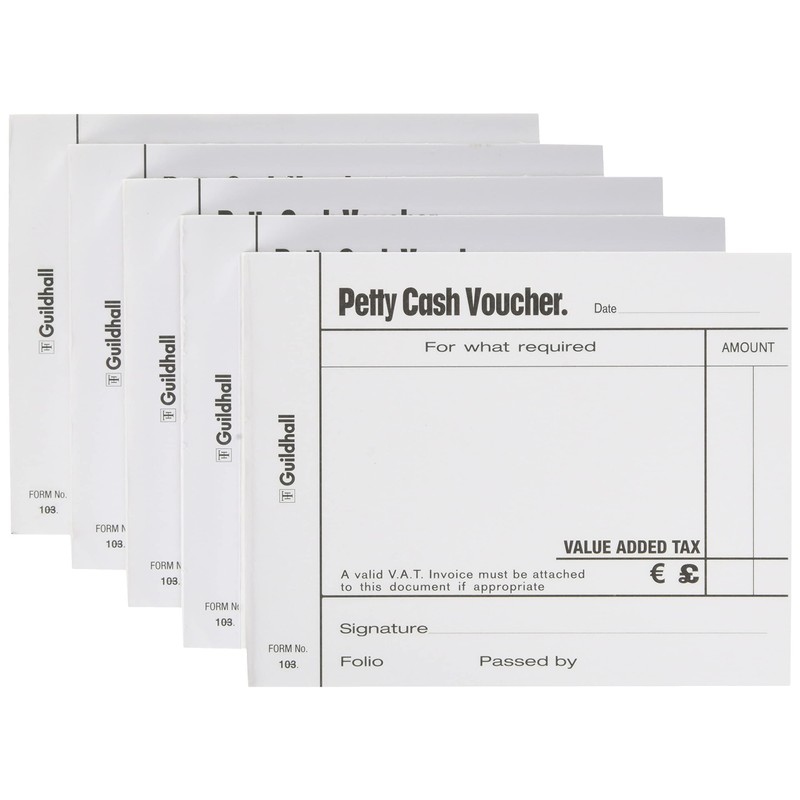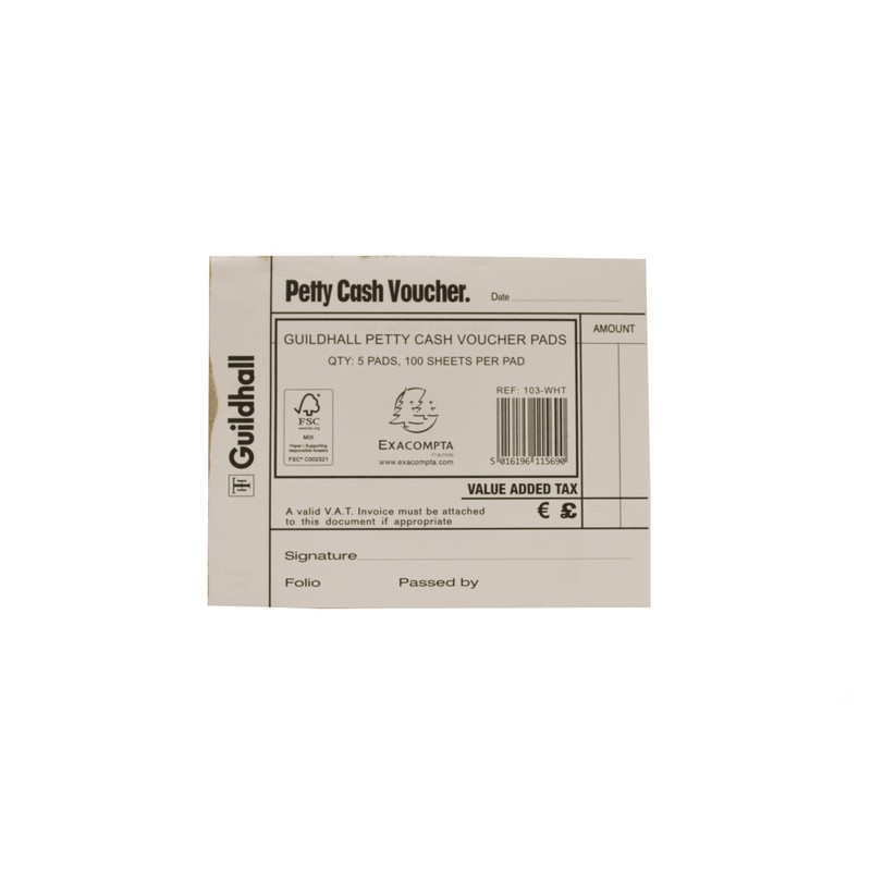 Exacompta - Ref 103-WHTZ - Guildhall - Petty Cash Vouchers, 101 x 127mm, 70gsm Paper, 100 Sheets per Pad, Pre-Printed Headings for Accurate Recording - White, Pack of 5