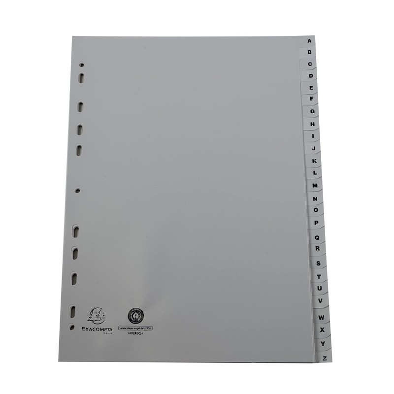 Exacompta - Ref 1726E - PP Printed Indices - For Use With A4 Documents, 0.1mm Polypropylene, Pre-Punched, Soft & Tear Resistant - 26 Divider Parts (A-Z) - Grey