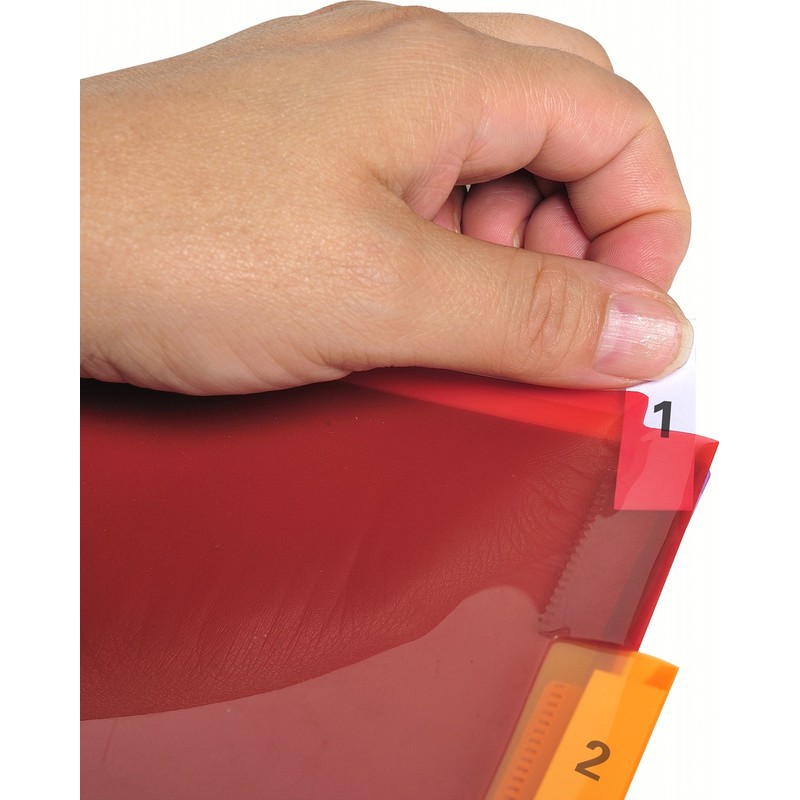 - Label holders so the tabs can be identified. The dividers are supplied with an A4 sheet of micro-perforated labels that can be personalised.