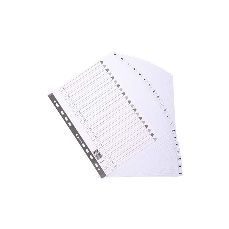 Exacompta - Ref MWDA-ZZ-EW - Mylar Printed Indices - For Use With A4+ Documents, Pre-Punched, 160gsm White Card with Reinforced Plastic Tabs, FSC-Certified - 20-Part Dividers (A-Z)