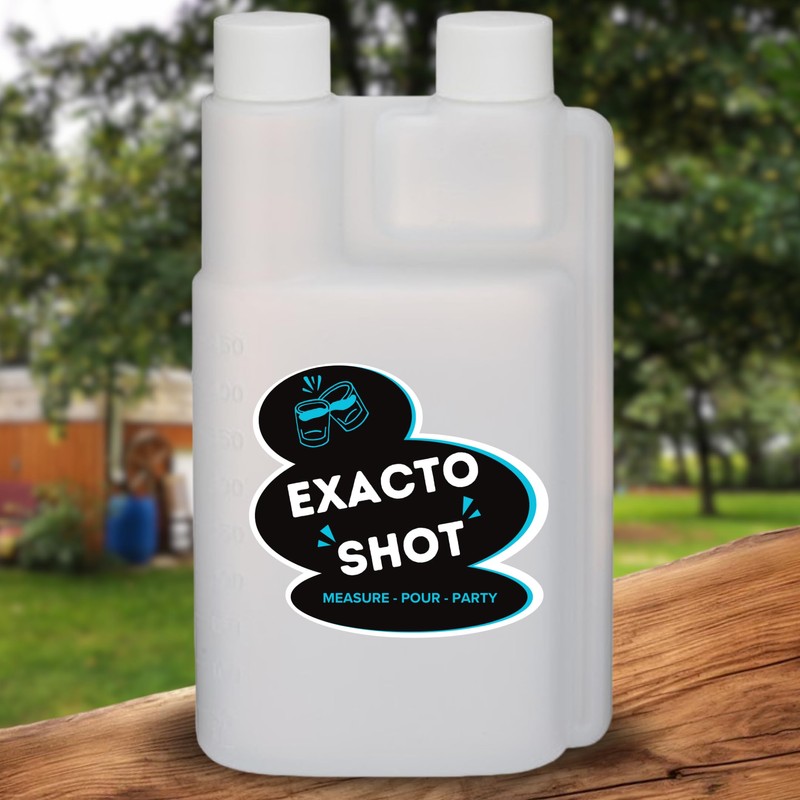 Exacto Shot Portable, Plastic Twin Neck Measurement Bottle, Outdoors Flask Beverage Dispenser.