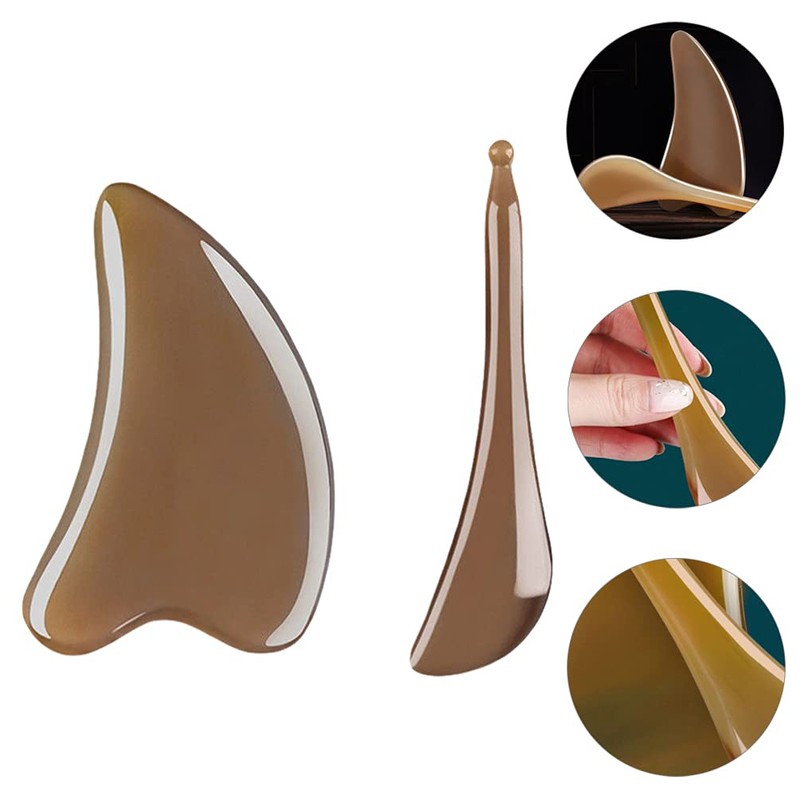 EXCEART Gua Sha 2Pcs Ox Horn Gua Sha Scraping Board Trigger Point Massage Stick Guasha Facial Massager Tools for SPA Acupuncture Face Eye Body Gua Sha Facial Tools