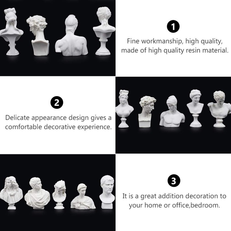 EXCEART Headless Statue Greek God Bust 10pcs Mini Figures of Greek Mythology Statue Resin Sculpture World Famous Figurine Home Desktop Decor Retro Art Statue Room Greek Figurine Sketch Statue