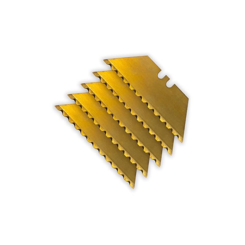 Exceed Designs GOLD 12-Point SERRATED Razor Blades (Premium TITANIUM Coated SK5 Blank Utility Knife Blades) 5-Pack