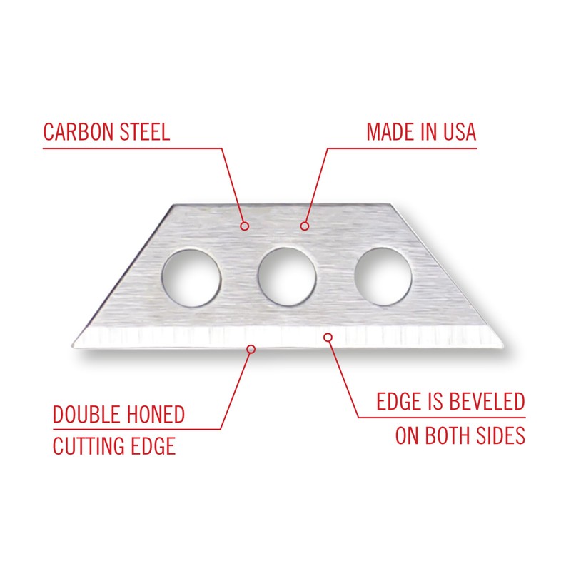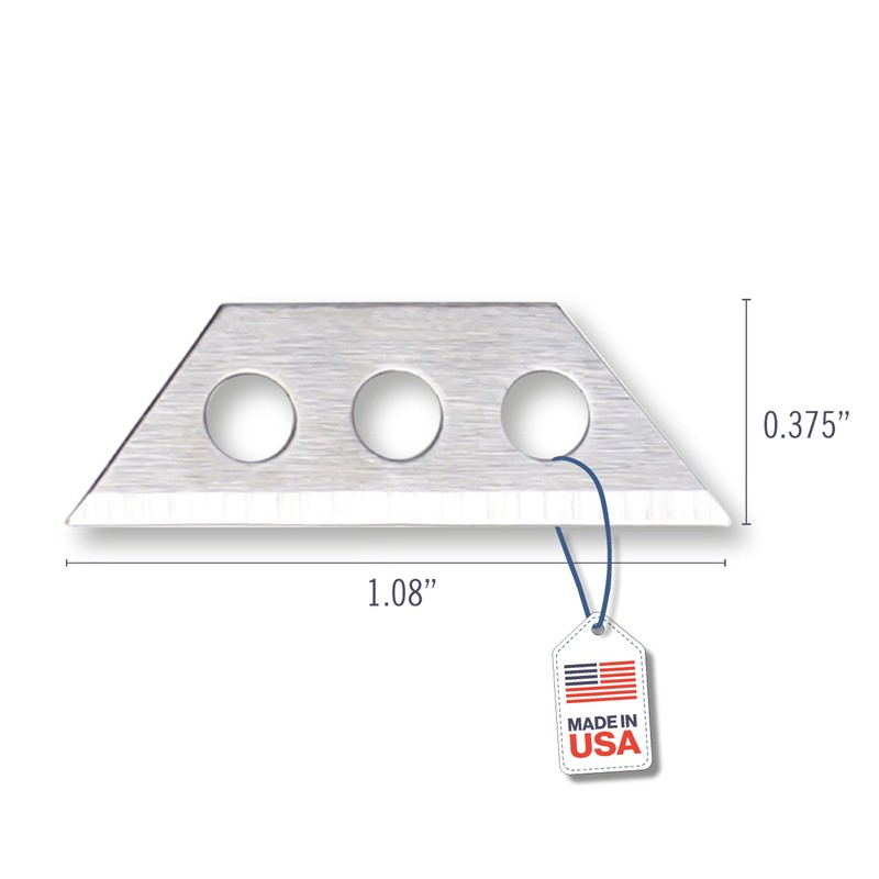 Our high-quality 1.1” x .375” x .018” carbon steel blades are designed to handle extended periods of heavy usage, delivering unparalleled control and accuracy. The notch-free corners and three centered holes reduce friction and improve performance and longevity as you slice, cut, and trim material. Designed for a secure fit on most standard mini utility knives and box cutters, these general purpose micro blades offer incredible versatility, value, and durability.