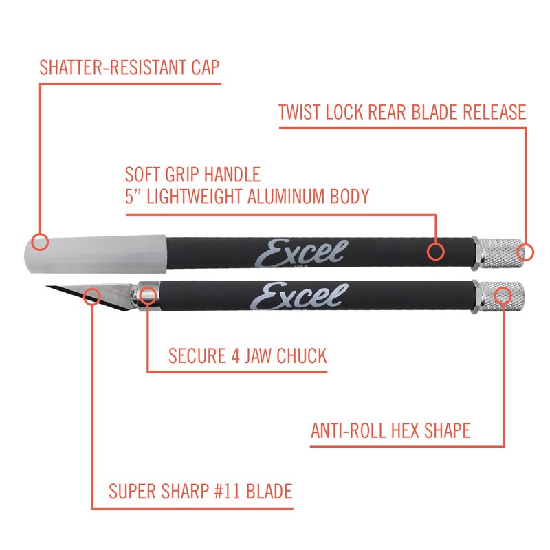 • LIGHTWEIGHT PRECISION KNIFE: Excel Blade's K18 reusable Soft Grip Craft Knife is an excellent tool for scrapbooking, model kits, crafting, and art projects, providing effortless precision and meticulous cuts