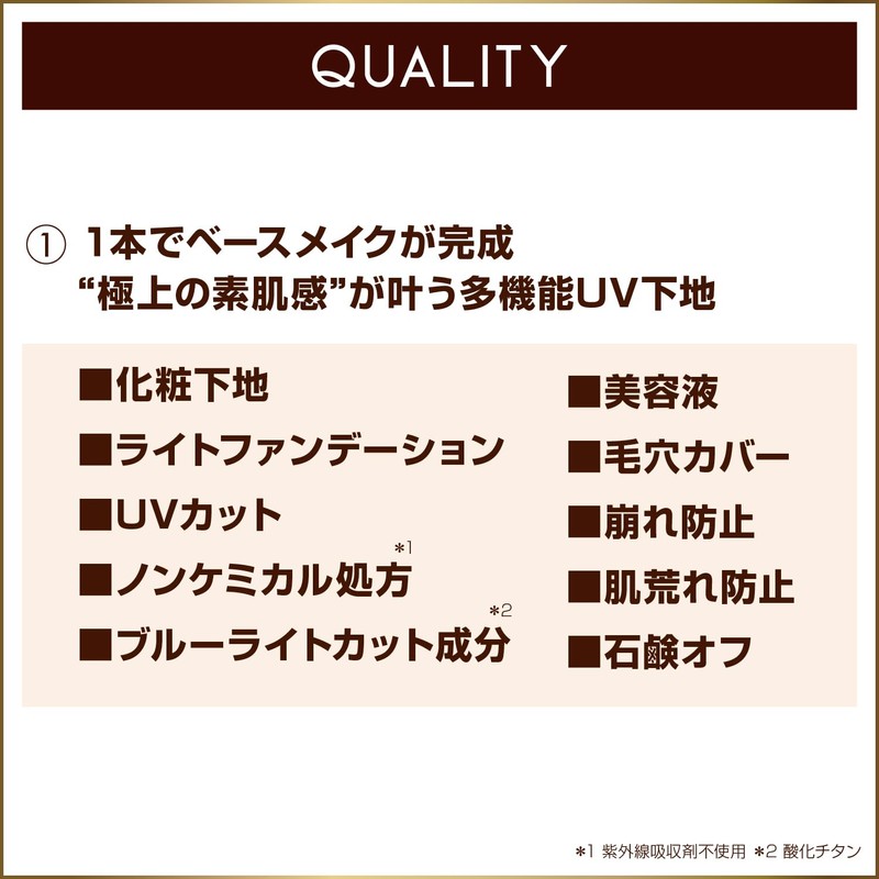 - One coat for smooth skin new all-in-one beauty liquid UV foundation. All-in-one serum base that gives you confidence every time you put it on