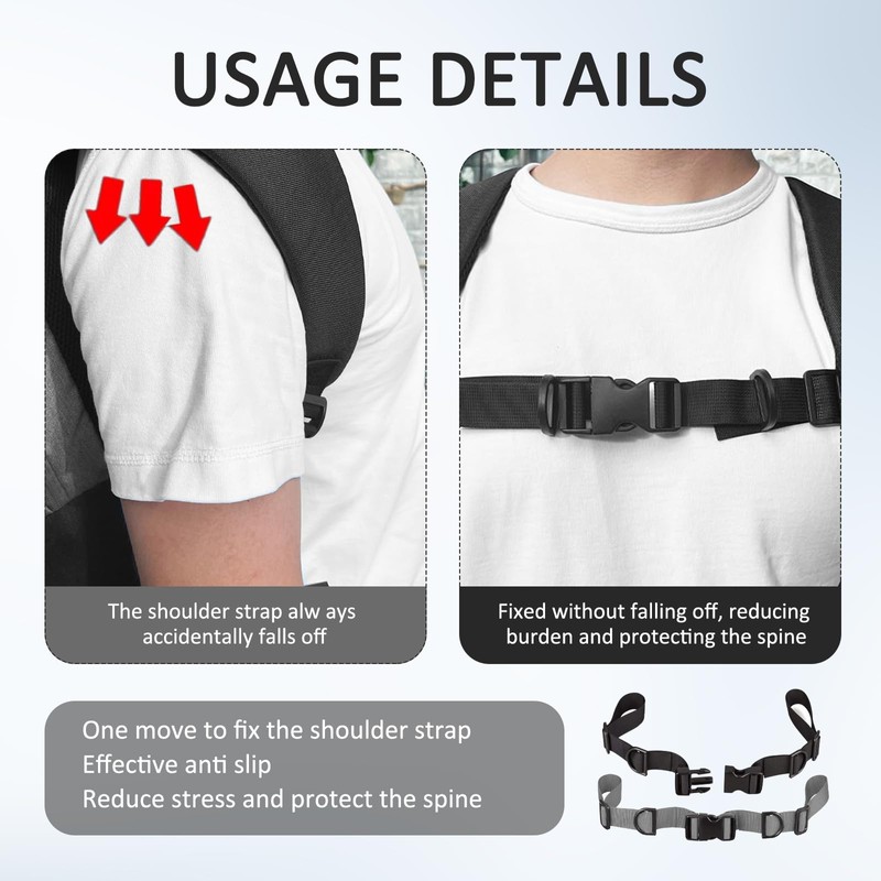 - Backpack accessories can easily fix the backpack shoulder straps to prevent them from shifting or sliding while walking, hiking or traveling, providing a more comfortable and stable fit.