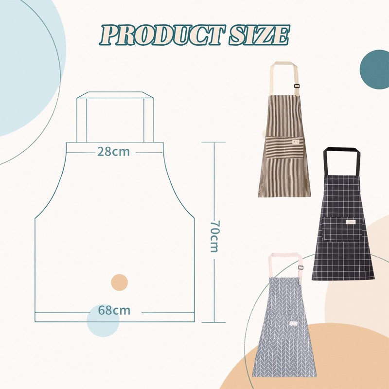 🍮With adjustable shoulder straps and back tie design, aprons for cooking with pockets can adapt to most people's body shapes. Whether you are thin or plump, you can find the right adjustment method.