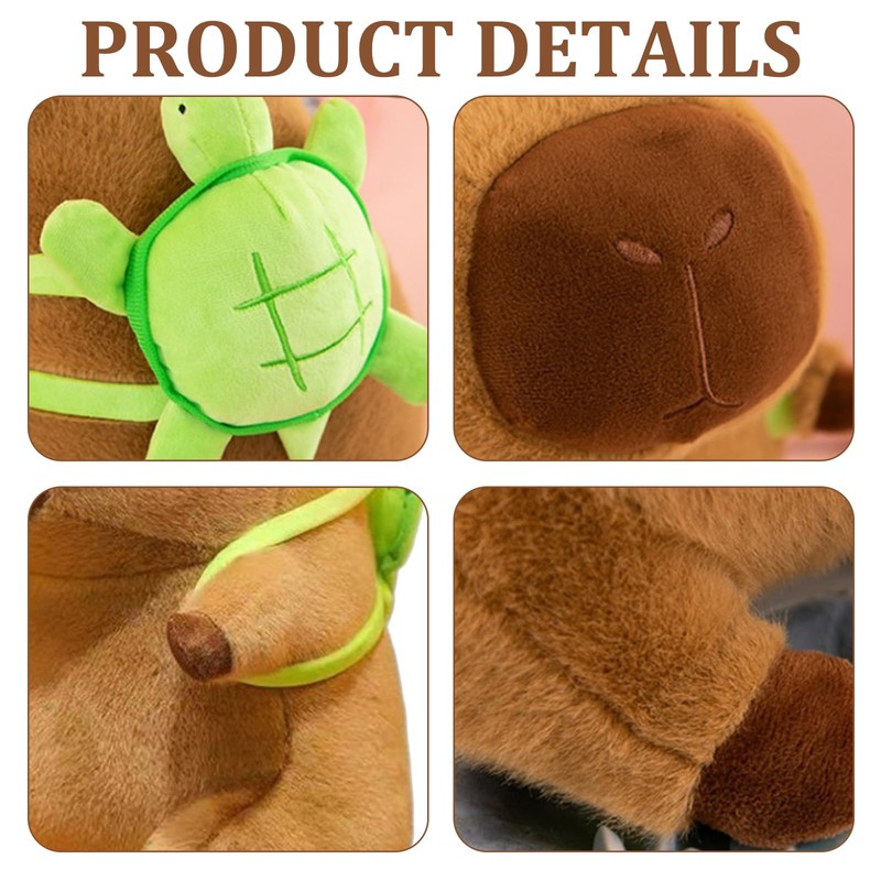 - Innovative Design: In order to increase the fun and creativity, capybara teddy is equipped with a detachable turtle backpack, which is very cute. You can use capybara as a shooting prop to make your photos more vivid and interesting.