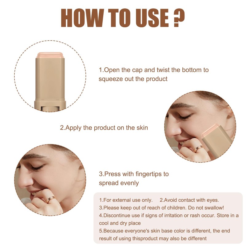 - 【Multi-Functional Product】A 3-in-1 multi-functional product, foundation stick combines foundation, beauty cream and skincare essence in one! Stick foundation is infused with moisturizing essence to even out skin tone, blur imperfections, create a transformative healthy glow, and make your skin look naturally flawless.