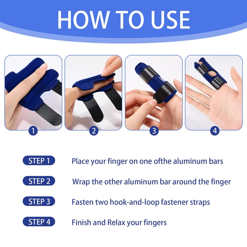 - Package Contents: You will receive 4 broken finger supports, with single and double aluminum strips. Whether worn during the day or at night, this finger straightener can bring the best support experience to your injured finger.