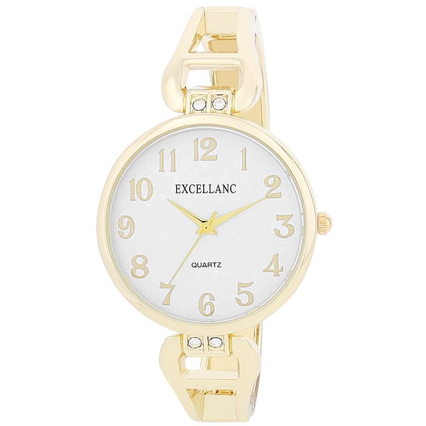 Excellanc Ladies Clasp Watch Bangle Metal Bracelet Readable Numbers Analog Length 15cm Quartz Wrist Watch Gift Idea for Women, gold, Bracelet