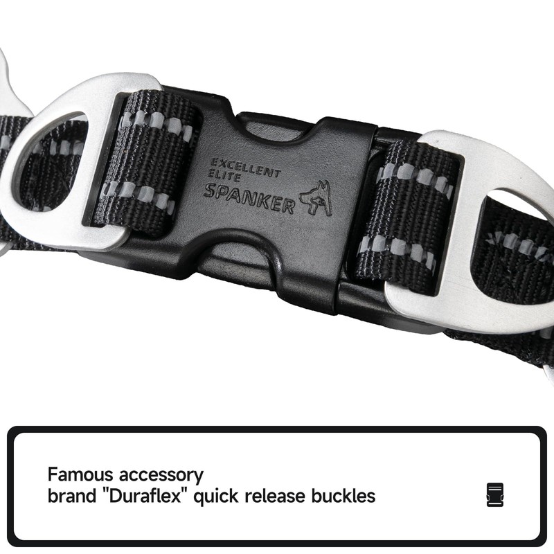 - 【DURABLE & STURDY BUCKLES】Features an zinc alloy V-ring on the back for connect the dog leash, Top quick release buckle is the brand's Duraflex, Gives you options for everyday walks or redirecting dogs that tend to pull, so you can enjoy more controlled and pleasant outings.