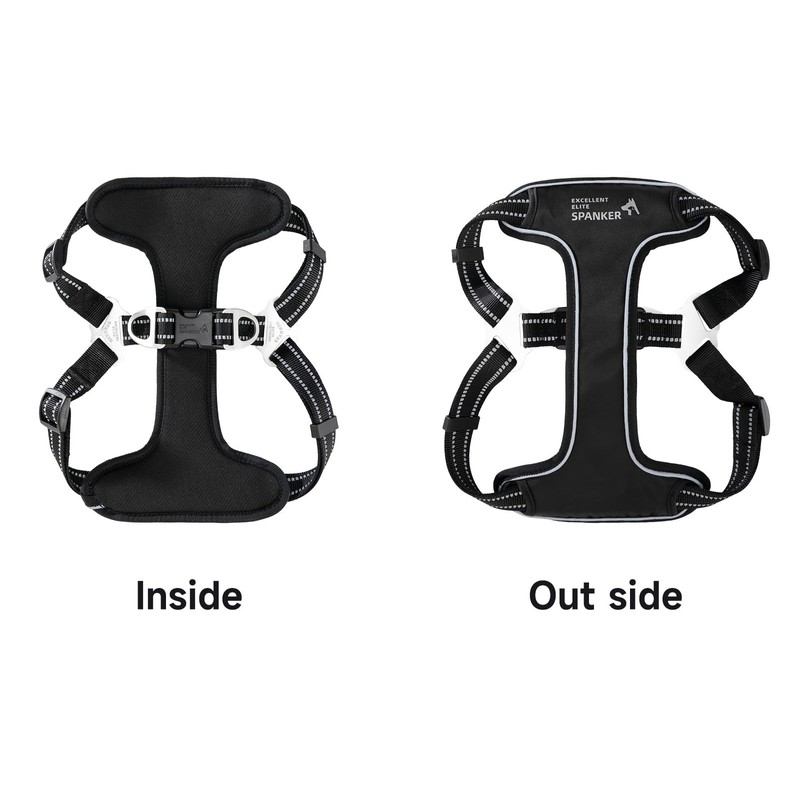 EXCELLENT ELITE SPANKER Reflective Nylon Dog Vest Harness EVA Padded No Pull Vest Adjustable with Nameplate-Front Clip Service Dog Harness for Small Medium Large Dogs (Black, M)