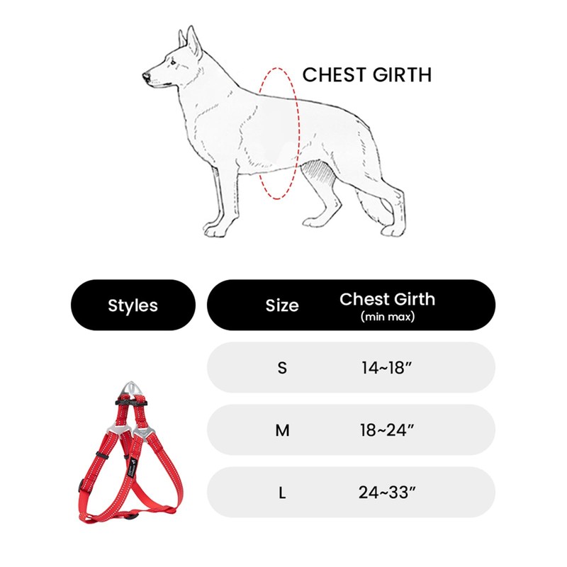 - Correct size of the harness: To determine the correct size of your dog, take a soft tape measure and measure around most of your dog's chest. Choose the smallest size that fits within this measurement.