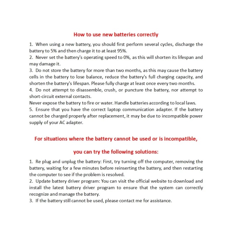 Product Specification: Condition: Brand New Voltage: 11.1V Capacity: 65Wh Color: Black Cell: 6-Cell Battery Type: Li-ion Compatible Part Numbers: T54FJ 8858X T54F3 M5Y0X NHXVW 04NW9 2P2MJ 911MD CWVXW DHT0W HCJWT 8P3YX 0T54FJ X57F1 P15F P15G P16G M1Y7N P8TC7 P9TJ0 PRRRF RU485 UJ499 YKF0M R48V3 312-1163 312-1164 312-1242 312-1324 312-1325 312-1311 N3X1D 71R31 312-1310 451-11947 312-1165 312-1323 PRV1Y Compatible Models:(Use"Ctrl+ F" Find your Model) Dell Inspiron 14R 14R-SE Series Battery 14R-4420 14R-5420 14R-5425 14R-7420 14R-SE-4420 14R-SE-5420 14R-SE-7420 Dell Inspiron 15R 15R-SE Series Battery 15R-4520 15R-5520 15R-5525 15R-7520 15R-SE-4520 15R-SE-5520 15R-SE-7520 15R Turbo Dell Inspiron 17R 17R-SE Series Battery 17R-4720 17R-5720 17R-7720 17R-SE-4720 17R-SE-5720 17R-SE-7720 17R Turbo Dell Vostro 3460 3560 Battery, Dell Precision M2800 Battery Dell Latitude E6520 E6530 E6540 Series Dell Latitude E6420 E6430 E6440 Series Dell Latitude E6420 E6430 ATG Series Dell Latitude E6420 E6430 XFR Series Dell Latitude E5420 E5430 E5520 E5530 Series Dell Latitude E5420 E5520 N-series Please confirm your computer model, adapter capacity, and connector. Our list of compatible models is incomplete. If you cannot find your laptop model in it, please contact us. |