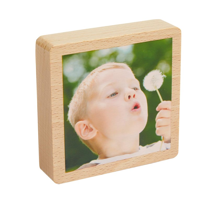 - WHAT YOU GET: This block set includes 16 beechwood blocks that feature a photo on one side, and art on the other. The corners are soft for safety.