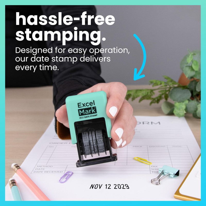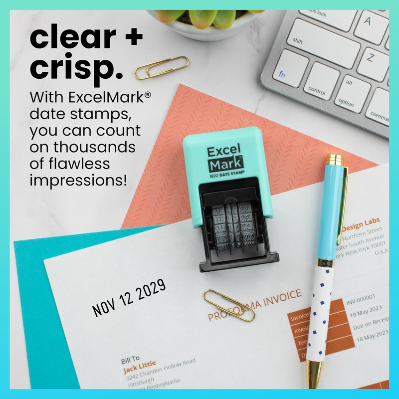 ExcelMark 1822 Date Stamp – Perfect for Shipping, Receiving, Expiration and Due Dates (Black Ink, Seafoam Mount)