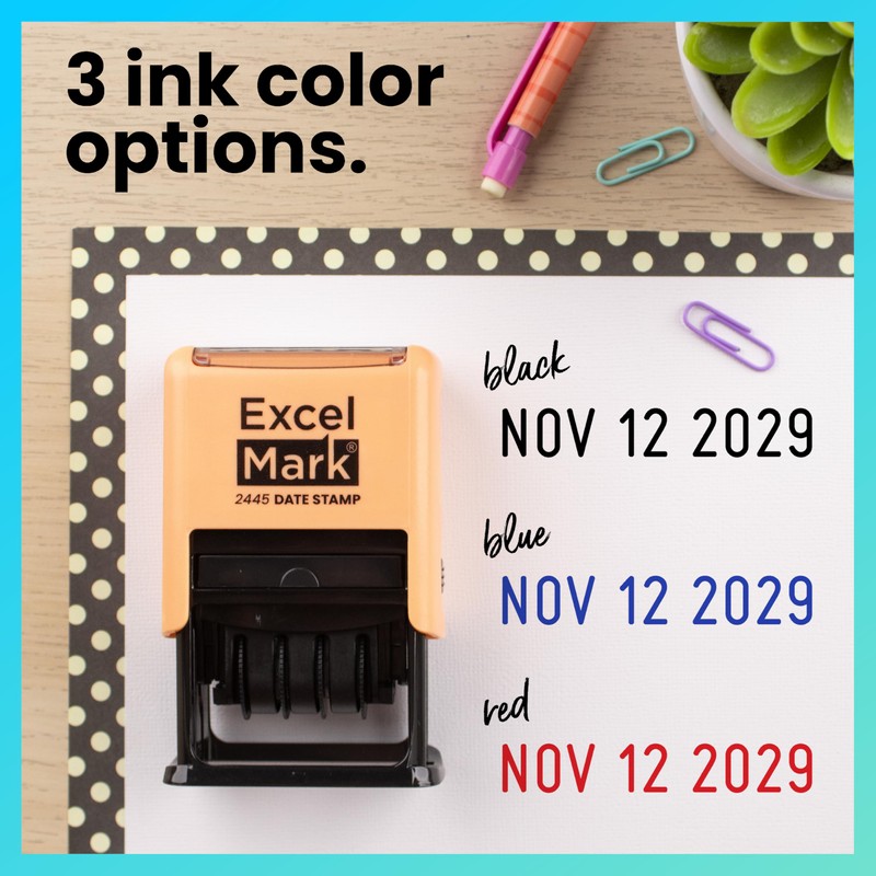 ExcelMark 2445 Date Stamp – Perfect for Shipping, Receiving, Expiration and Due Dates (Red Ink, Peach Mount)
