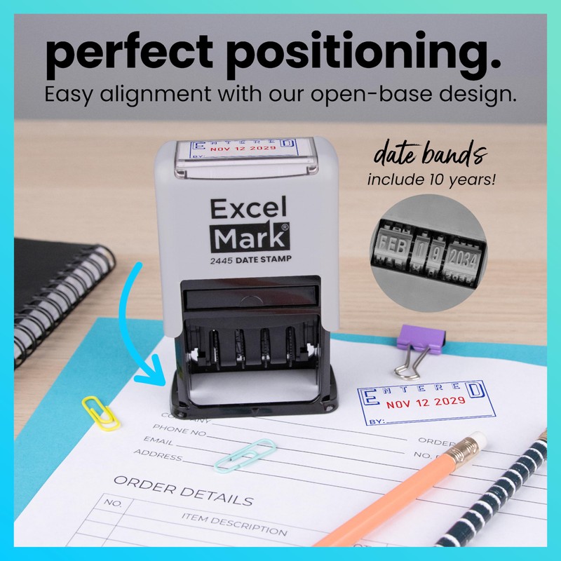 • DATE STAMP - ExcelMark's new date stamp offers a better quality stamp than most daters. With 10 years worth of dates, this stamp is expected to last for a long time.