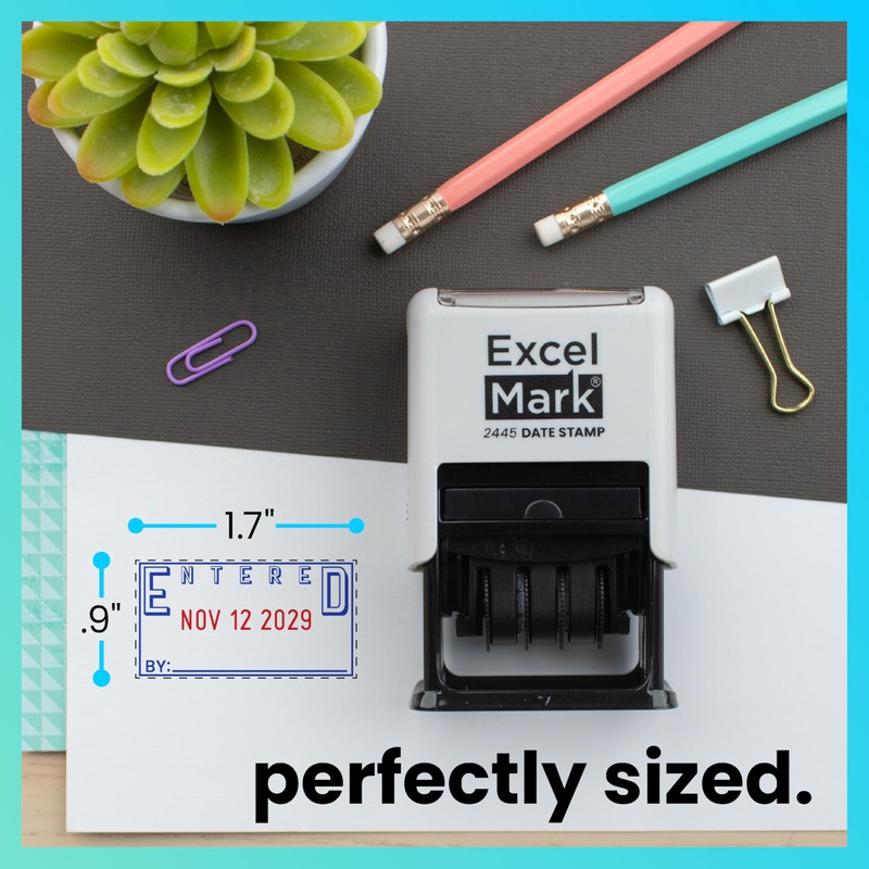 ExcelMark 2445 Date Stamp with Text - Blue and Red Ink (Gray Mount, Entered)
