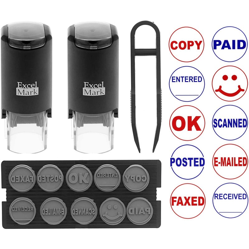 - Includes 2 self-inking stamps: 1 in Blue Ink, and 1 in Red Ink