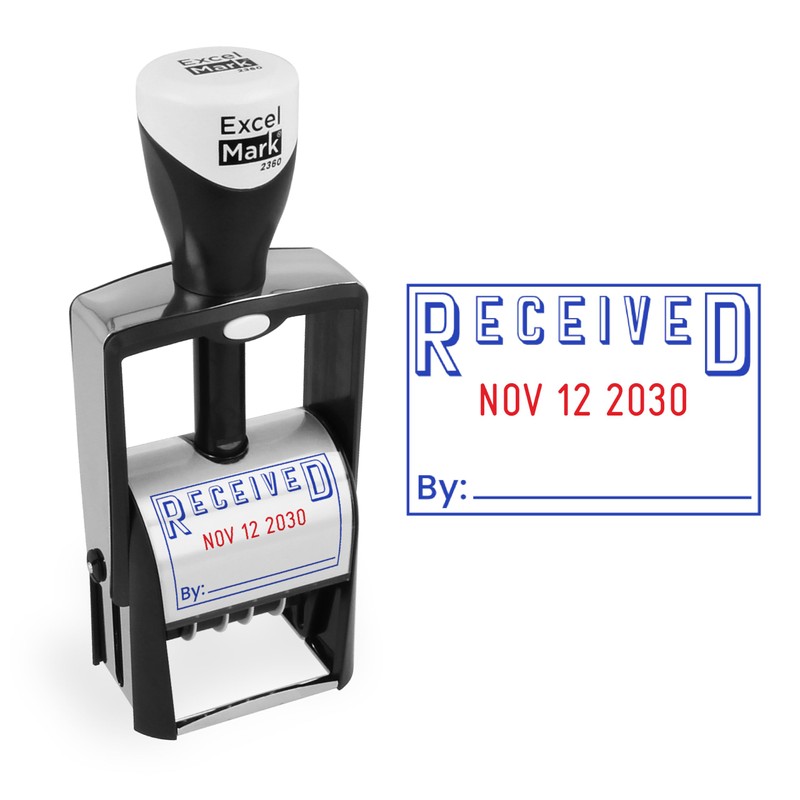 ExcelMark Heavy Duty Self-Inking Date Stamp (Blue/Red, Received)