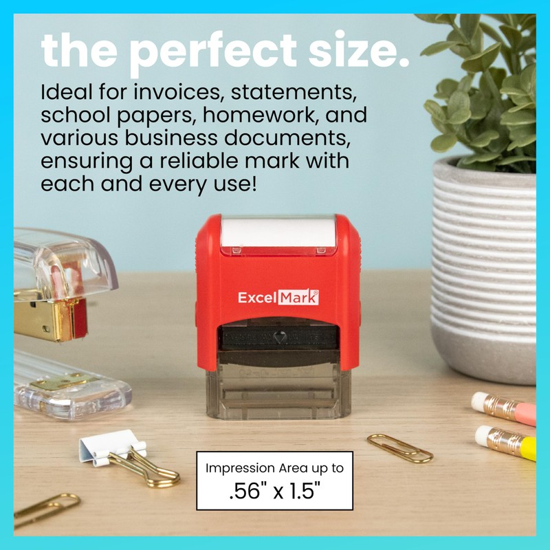 - Red stamp mount with a clear base allows you to easily align impressions