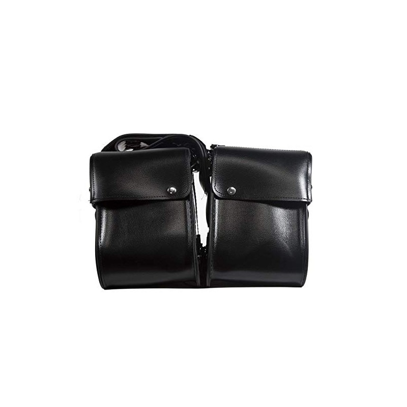 EXCELSIOR INT UNISEX WATERPROOF UNIVERSAL LEATHER TWO STRAP DUARABLE AND COMFORTABLE MOTORCYCLE BIKER SADDLE BAG -BLACK