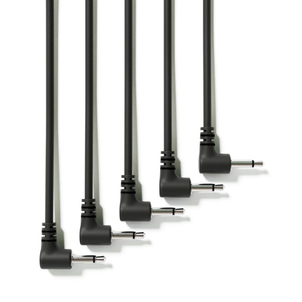 ExcelValley - 5-Pack - Right Angle Mono Modular Patch Cables - 3.5mm 1/8" Eurorack Synthesizer [Black | 30 cm - 11.81"]