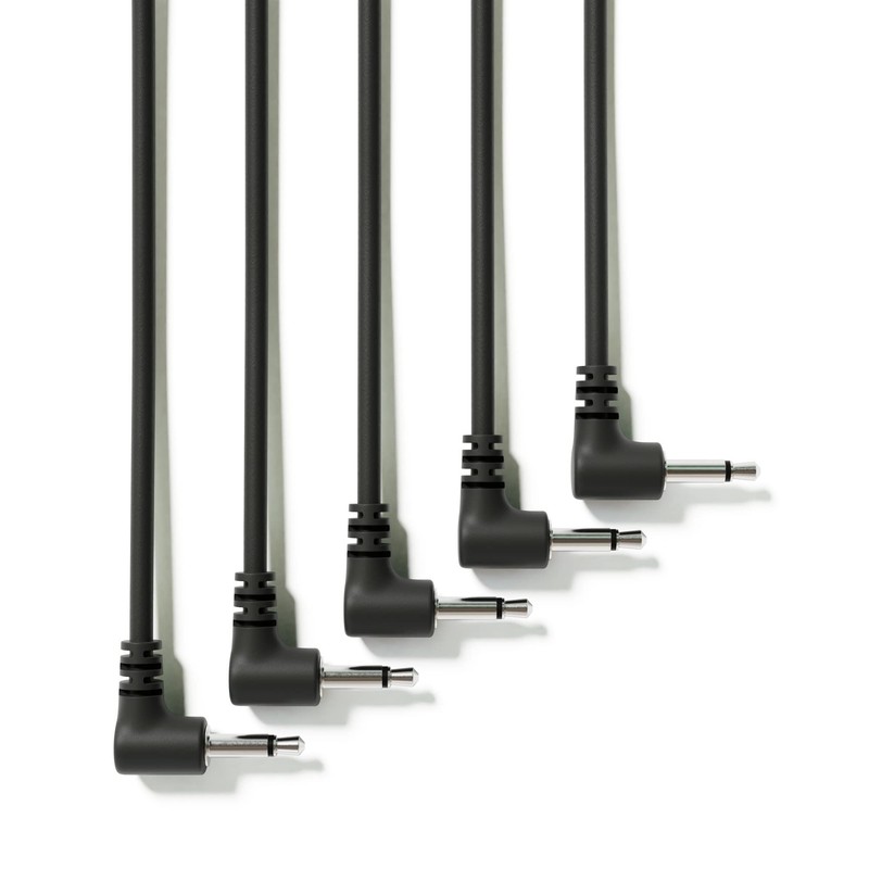 ExcelValley - 5-Pack - Right Angle Mono Modular Patch Cables - 3.5mm 1/8" Eurorack Synthesizer