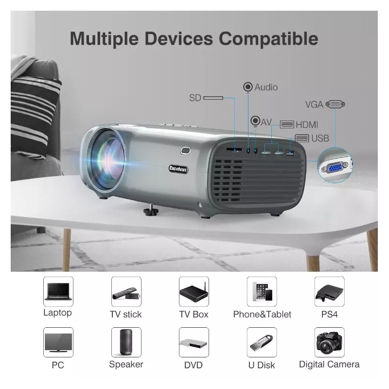 BL49 also have the ports like HDMI, VGA, USB, SD, AV, 3.5mm AUX output, you can also connect it with some entertainment devices conveniently, like laptop, PC, TV box, phone, tablet, PS4, Xbox,TV stick, speaker, U disk, DVD, digital camera, etc.